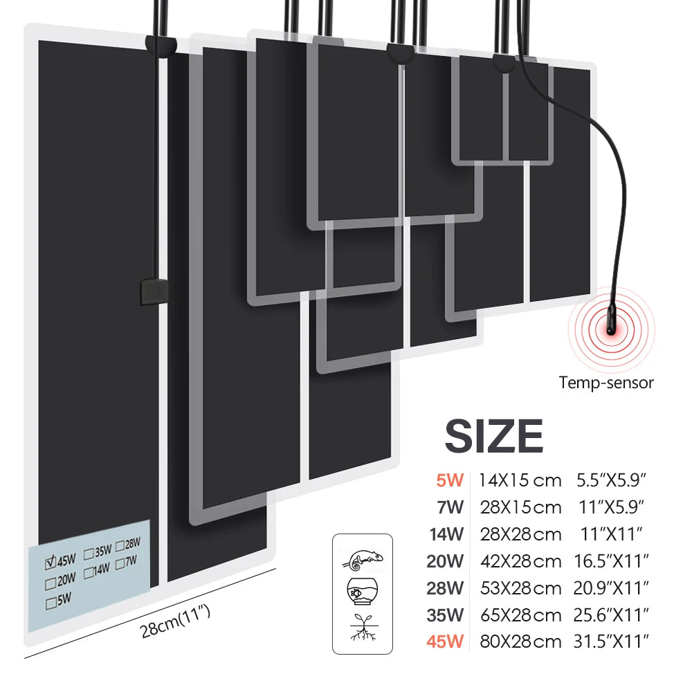 5W-45W Garden Plants Reptile Heating Mats with Adjustable Temperature Control Thermal Sensor Probe Can Set 0-50°C Pet Heater Pad