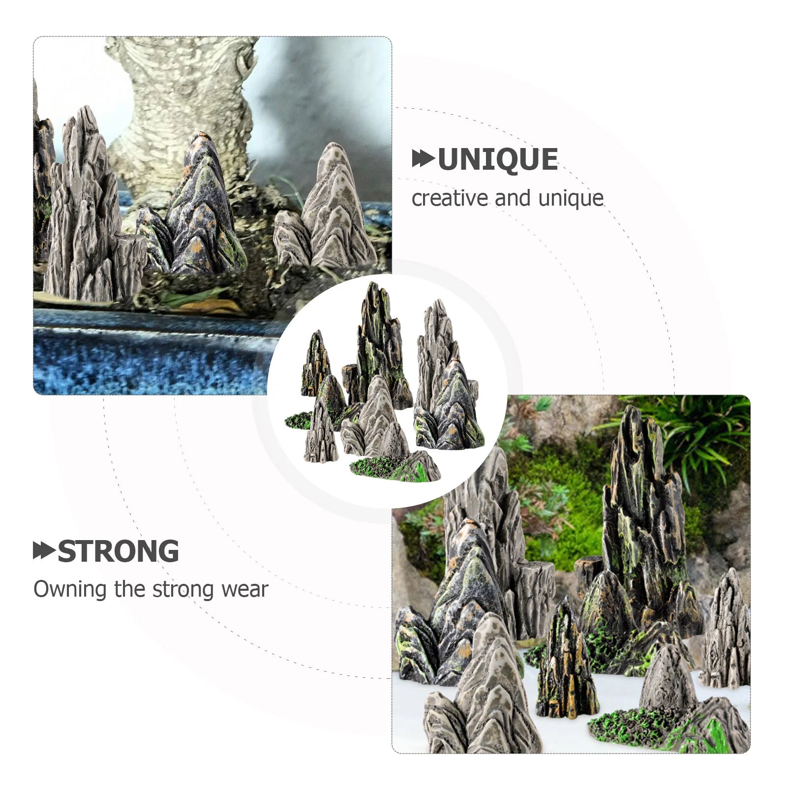 8 Pcs Mini Resin Rockery Simulated Mountain Bonsai Landscape Accessory Figurines Home Decor Garden ornament Craft Aquarium Decor