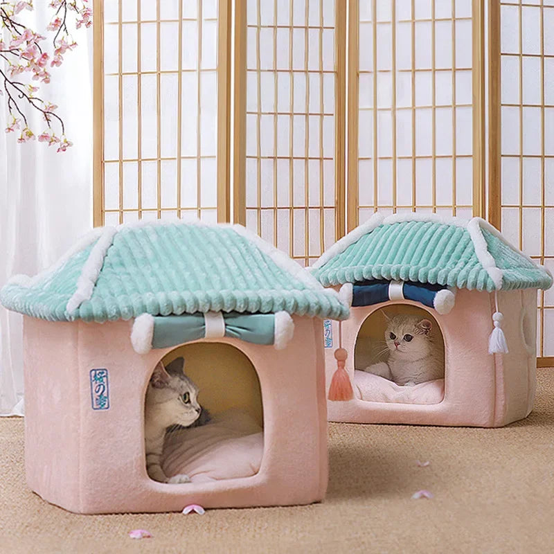Cat's Nest Warm In Winter All Seasons Universal Cat House Removable and Washable Cat Beds Pet Supplies Closed Cat House Villa