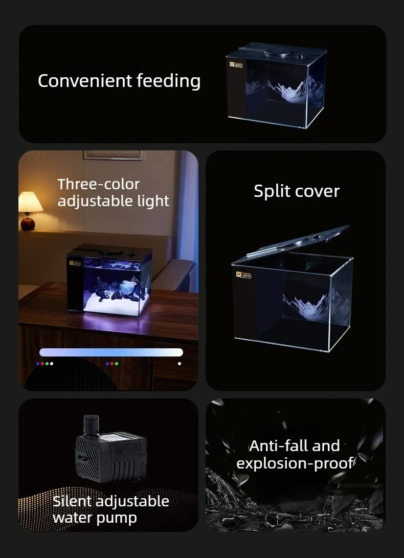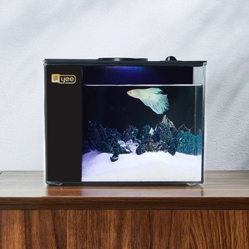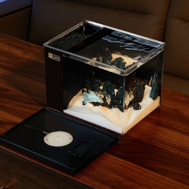 Desktop Fish Tank Betta Goldfish Aquarium with Light and Water Pump Luxury Mini Fishbowl Home Fish Aquatic Pet Decor Terrarium