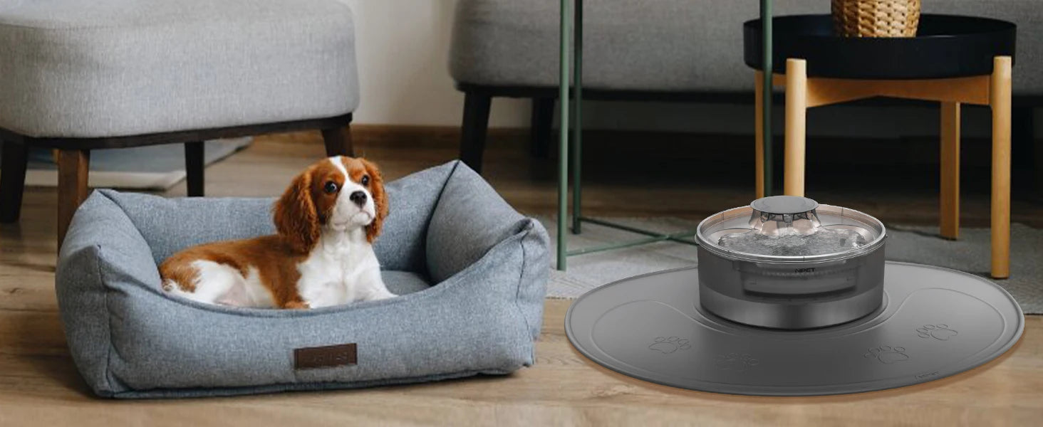 NPET Waterproof Silicone Dog Food Mat for DF10 Dog Fountain, Slip Resistant Dishwasher Safe Pet Feeding Mat,(28" x 2 1.26")
