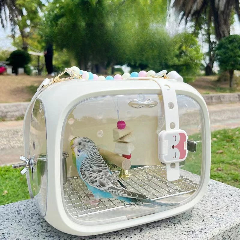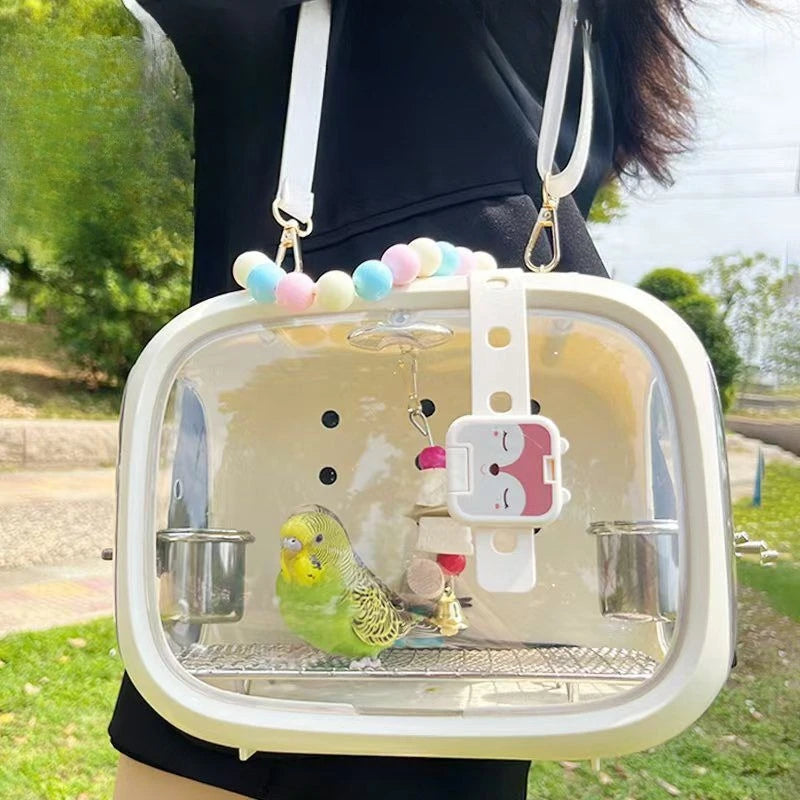 Parrot Cage Bird with Handheld Acrylic Outdoor Viewing Bird Cage Peony Carrying Bag Animals Carriers Portable Parrot Products