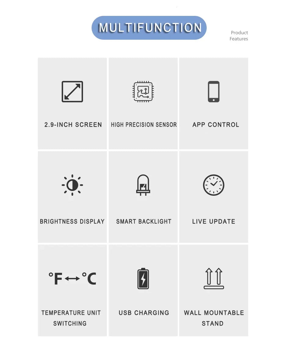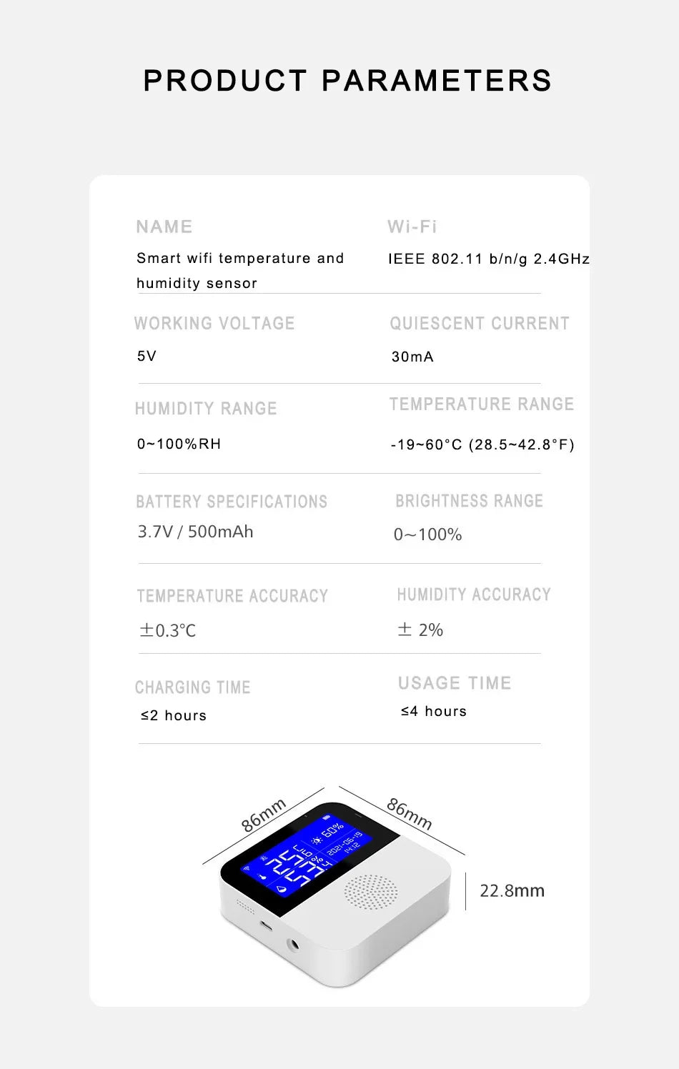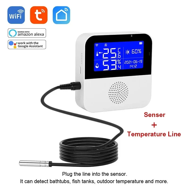 WiFi Tuya Smart Life LED Display Temperature Humidity Sensor Living Room Office Indoor Aquarium Water Temperature Detector Line