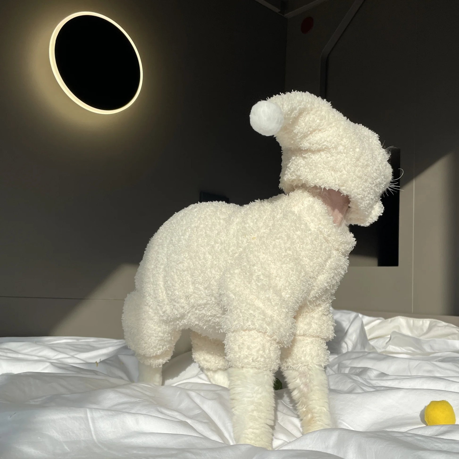 Winter Warm Plush 4-legged Sweatshirt Hat Suit for Devon Rex in Winter Soft Yellow Red Sweater for Sphynx Cat Kittens Khaki Coat